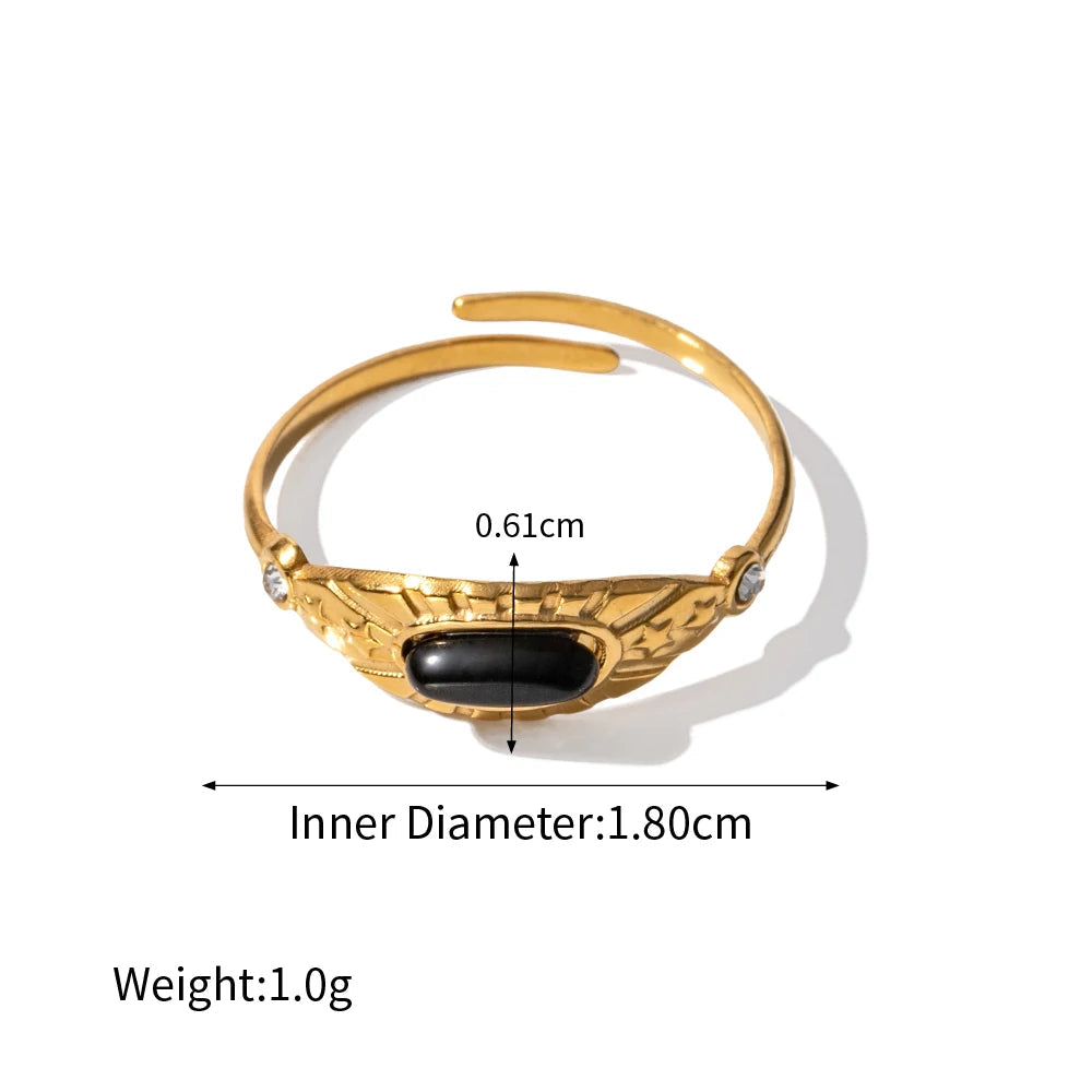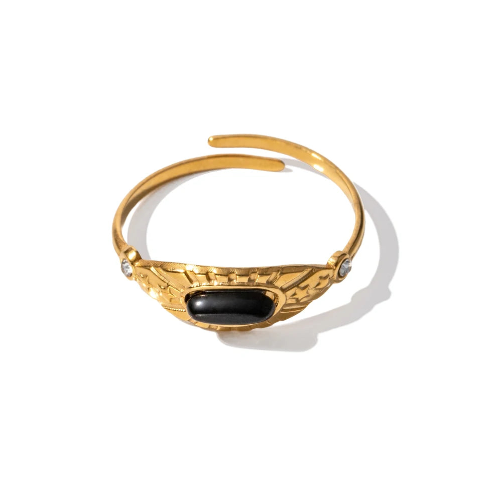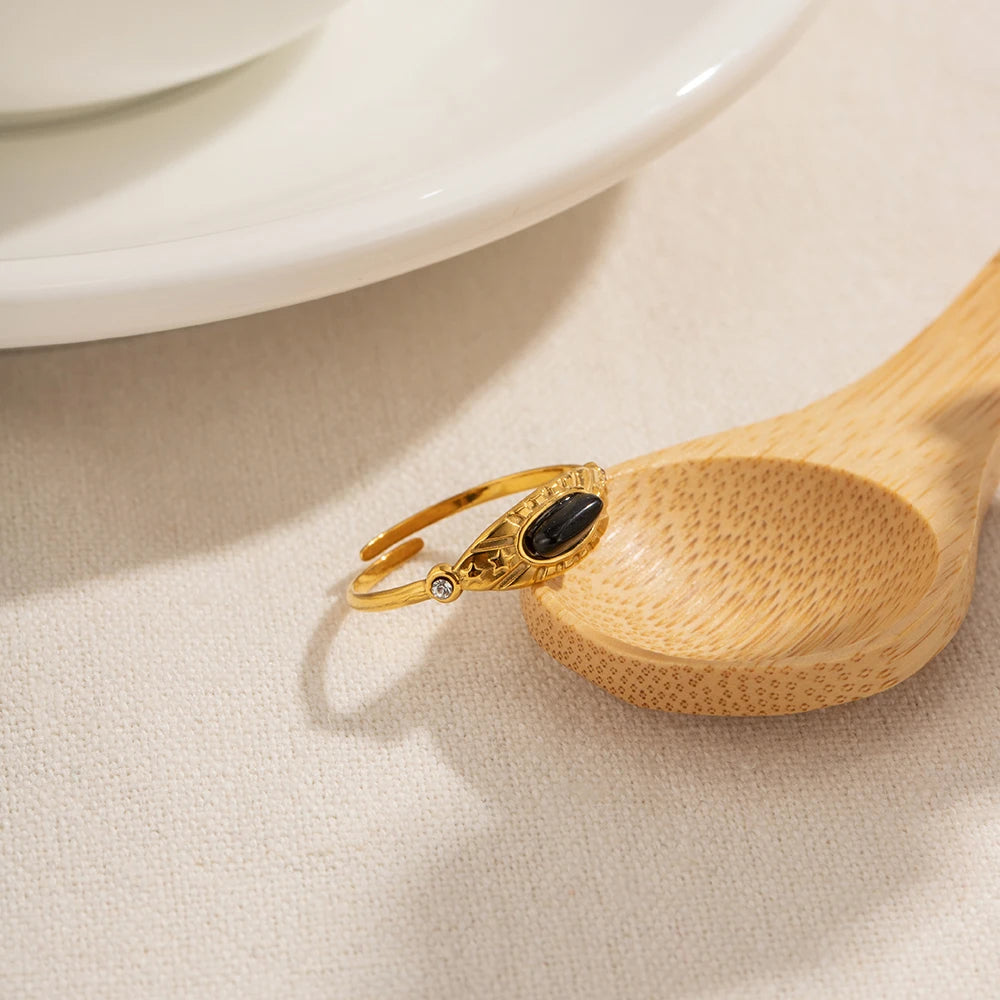 ステンレス304 低ニッケル 水に濡れても錆びにくい 18Kゴールドメッキ リング 天然石風ストーン 【YJ02160】