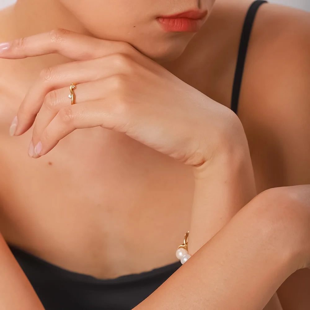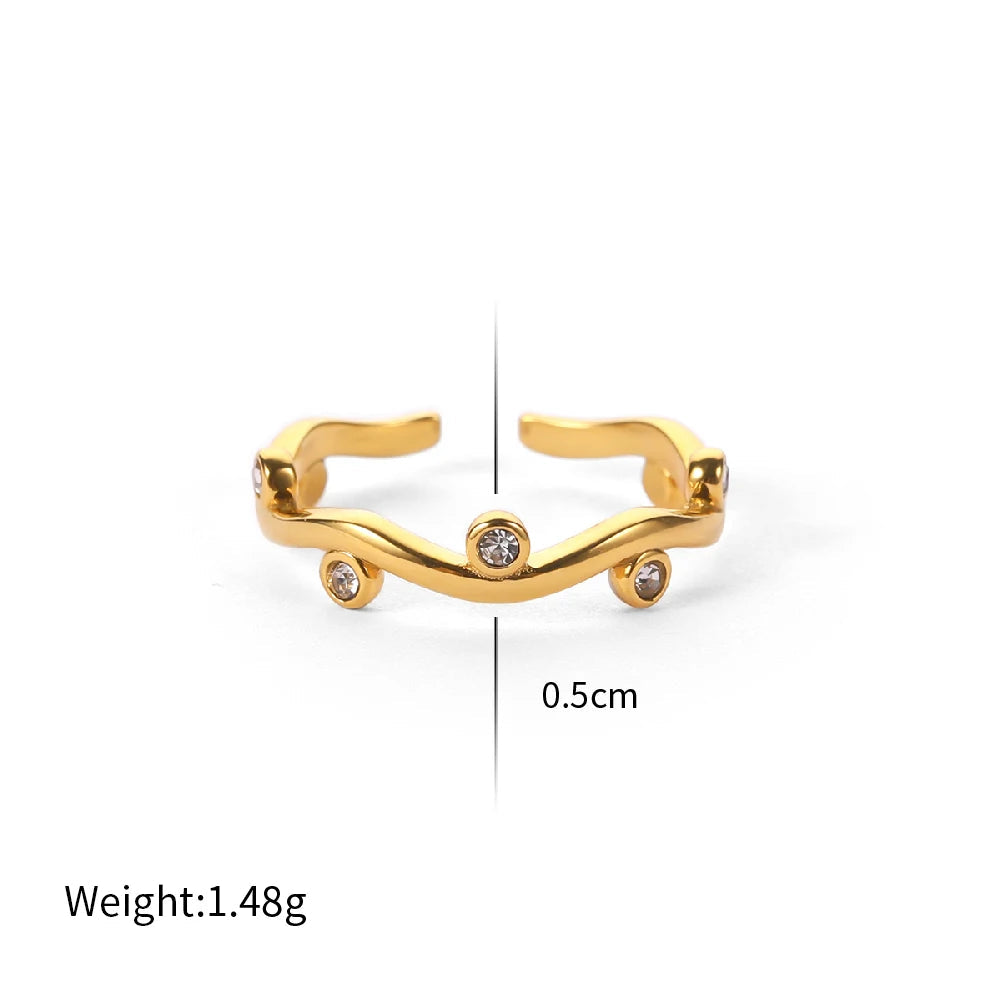 ステンレス304 低ニッケル 水に濡れても錆びにくい 18Kゴールドメッキ リング ジルコニア 【YJ02173】