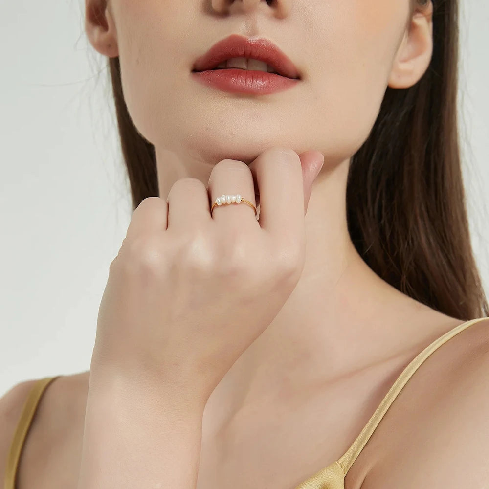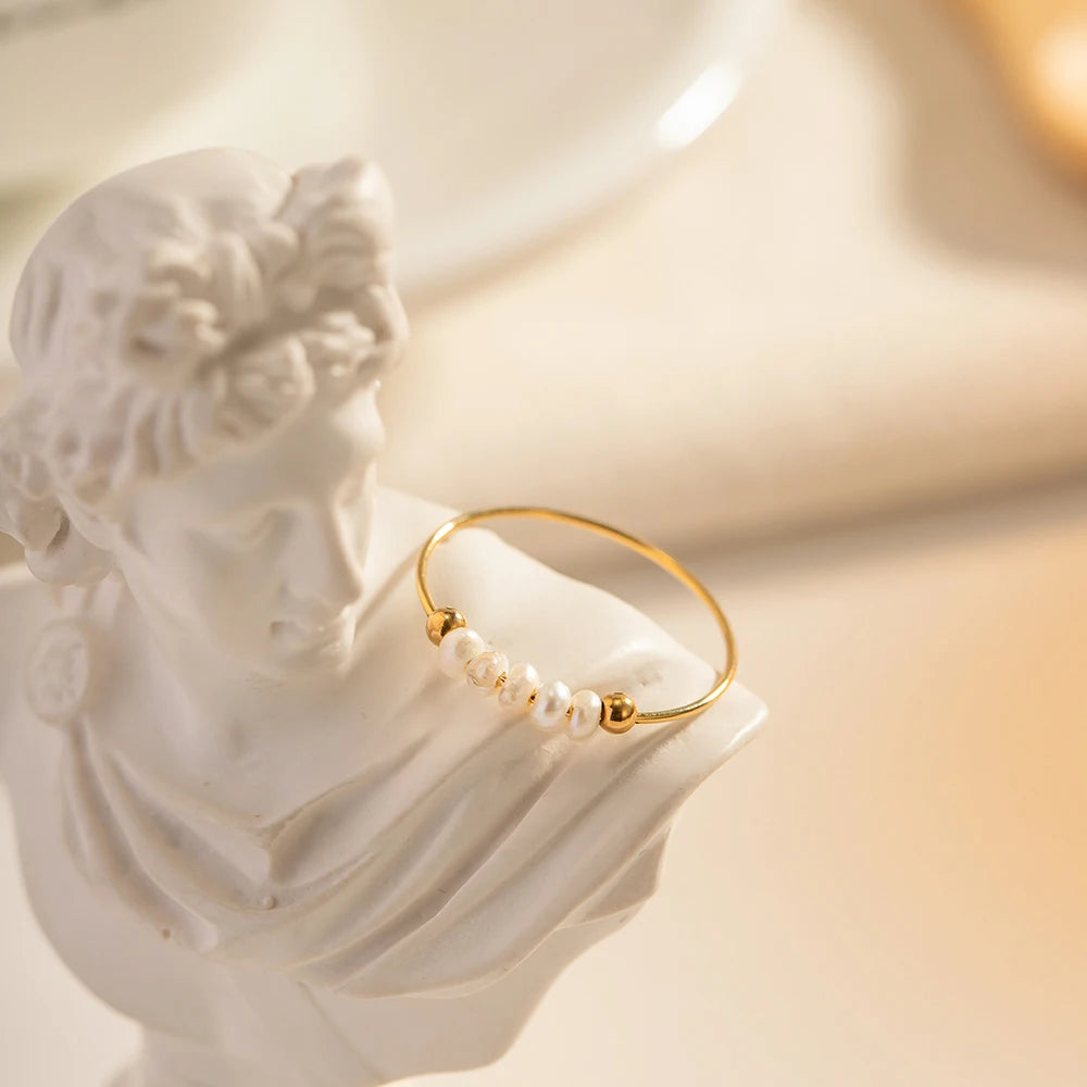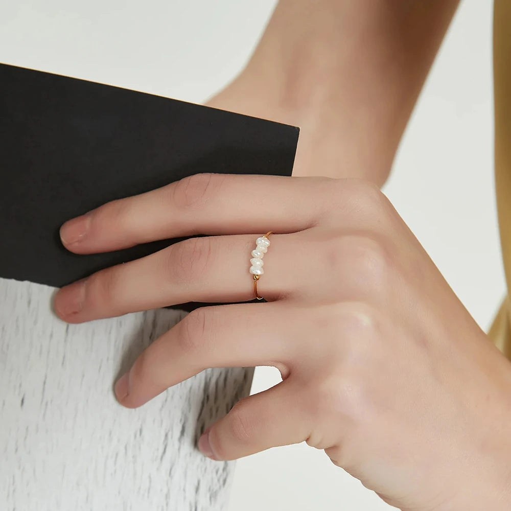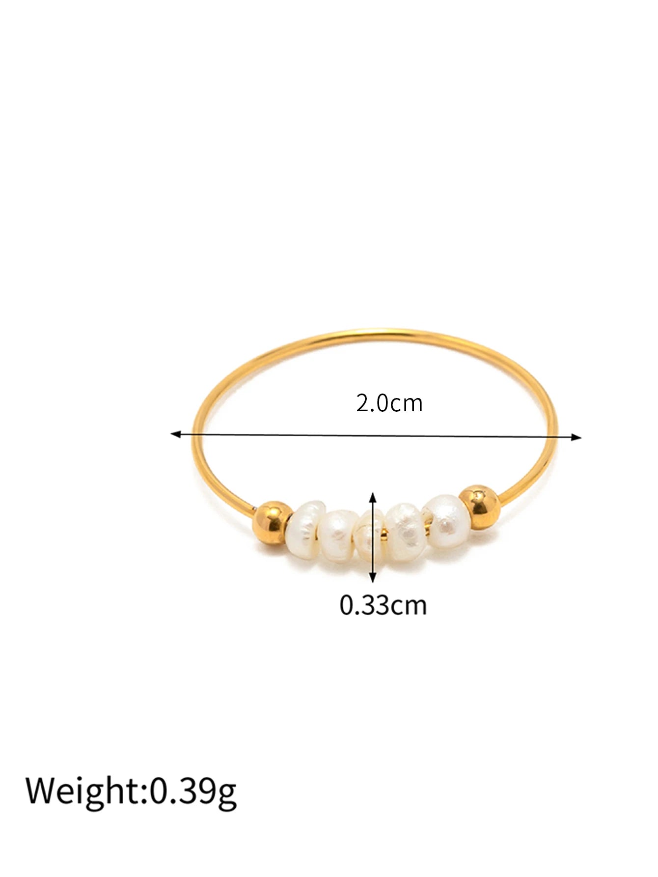 ステンレス304 低ニッケル 水に濡れても錆びにくい 18Kゴールドメッキ リング バロックパール 【YJ02177】