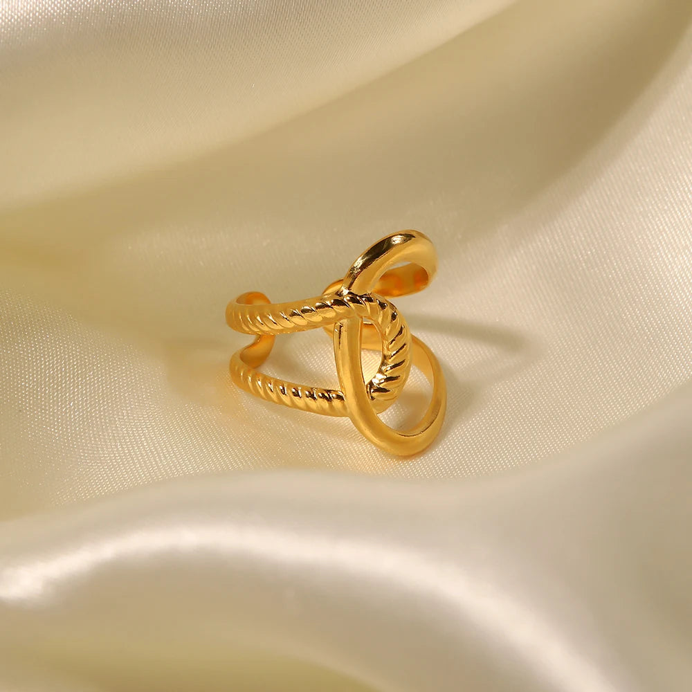 ステンレス304 低ニッケル 水に濡れても錆びにくい 18Kゴールドメッキ リング ウェーブ 【YJ02311】