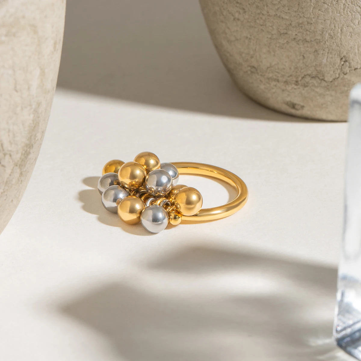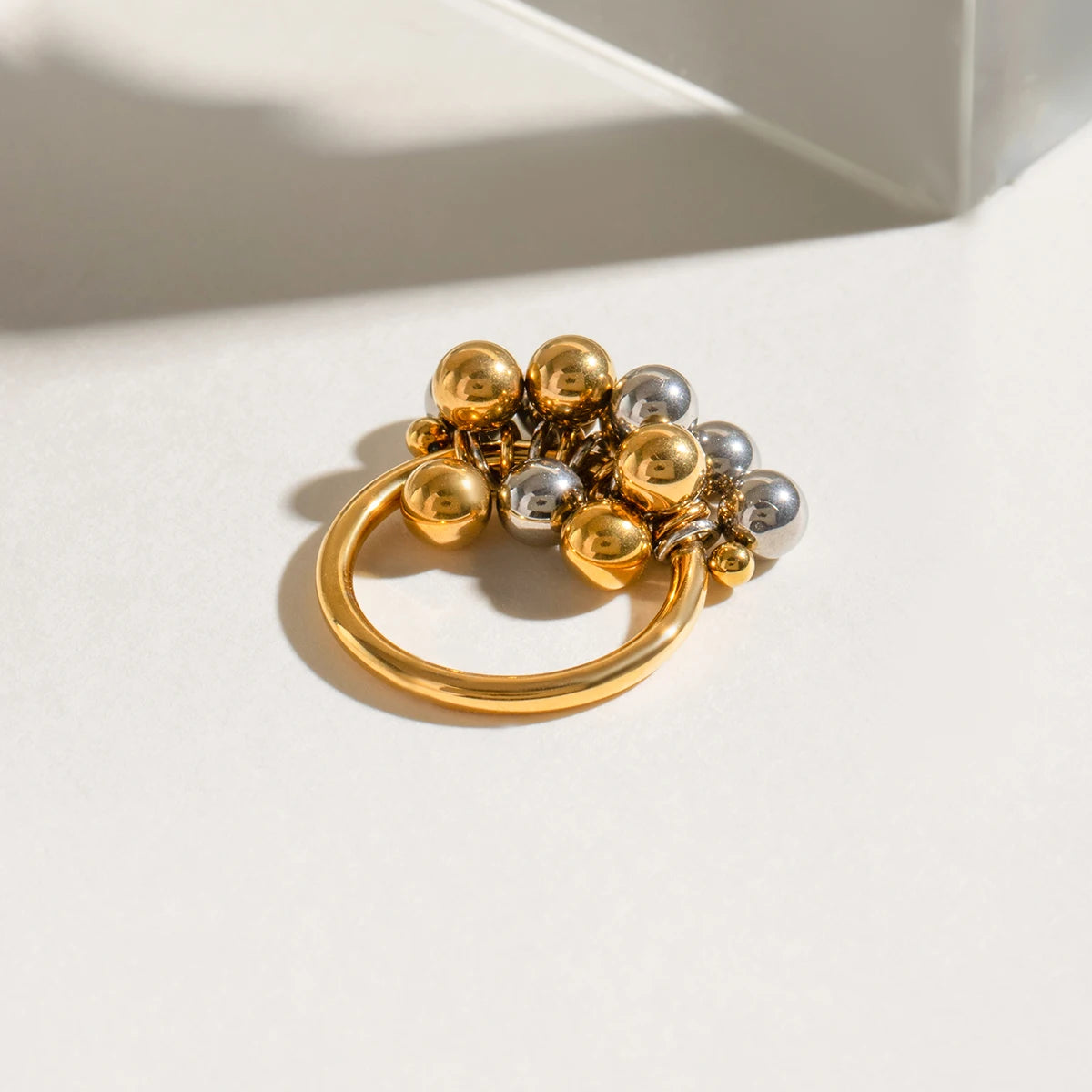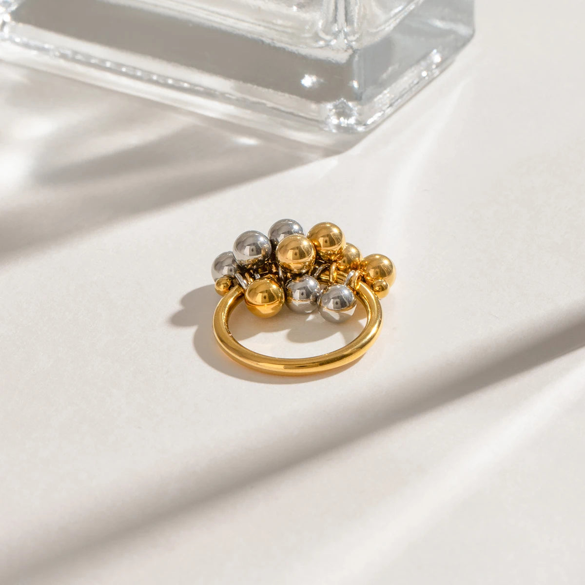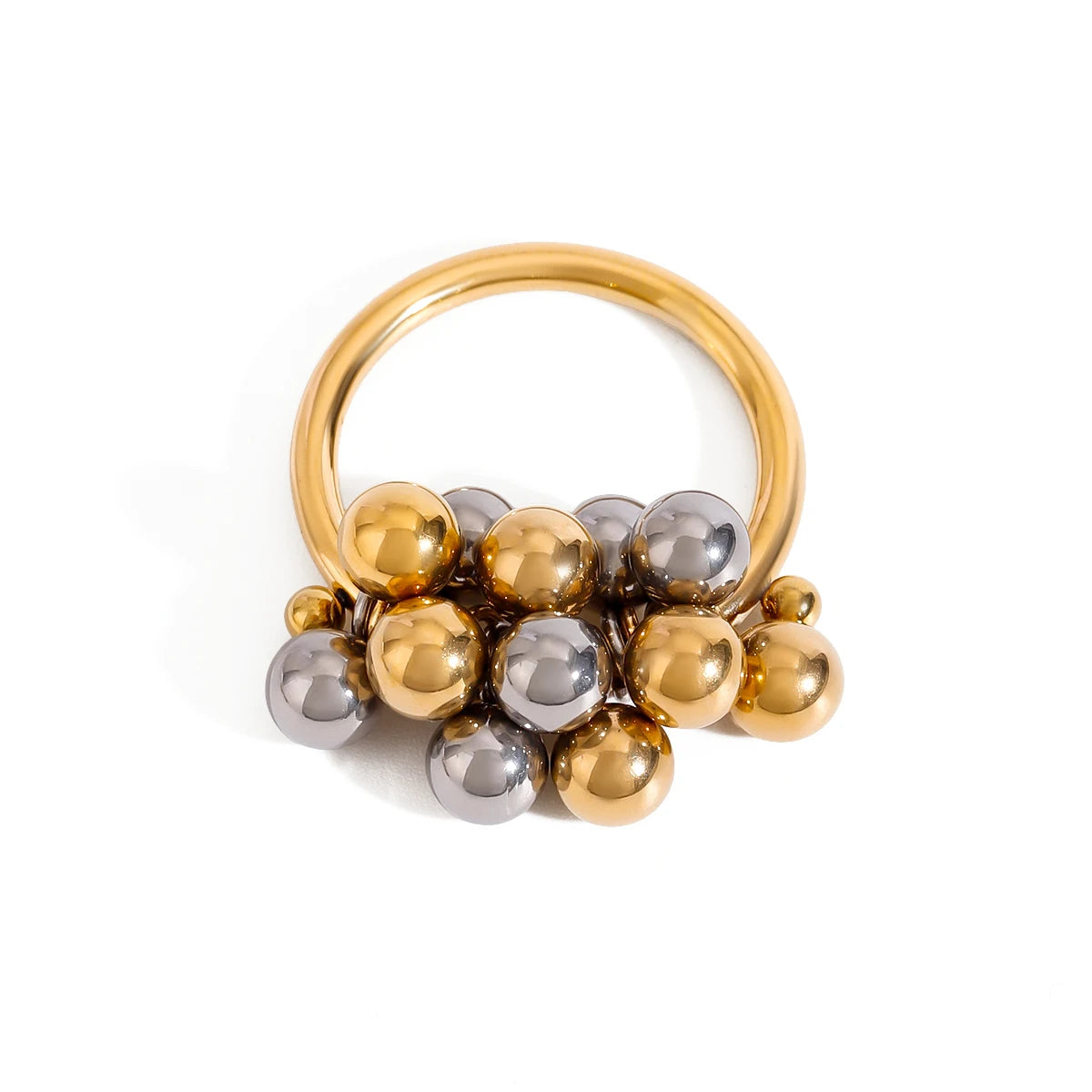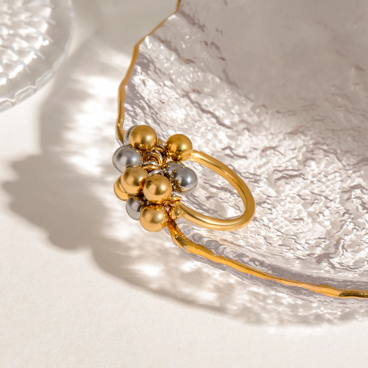 ステンレス304 低ニッケル 水に濡れても錆びにくい 18Kゴールドメッキ リング バブル 【YJ02546】