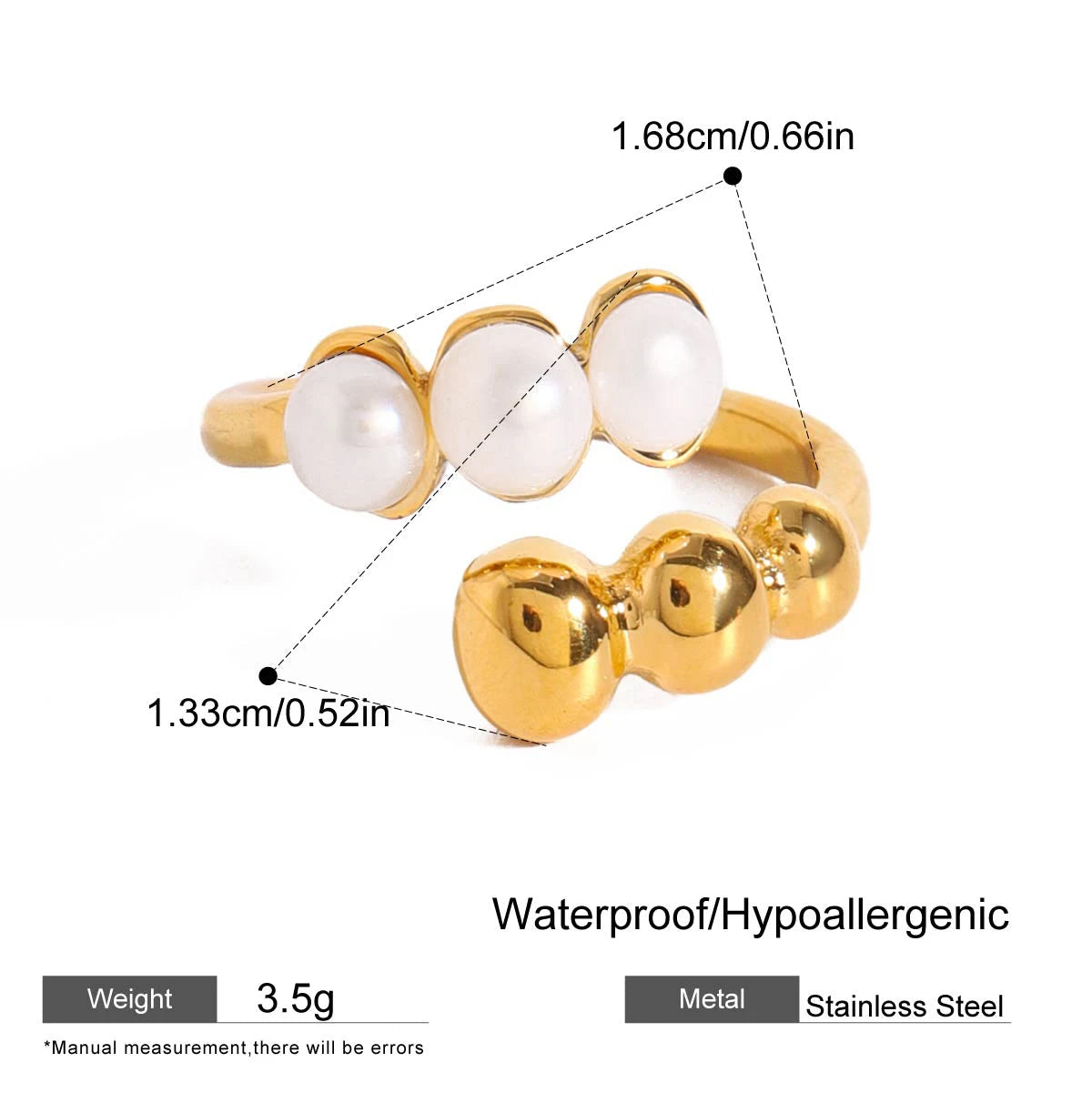 ステンレス304 低ニッケル 水に濡れても錆びにくい 18Kゴールドメッキ リング パール 【YJ02715】