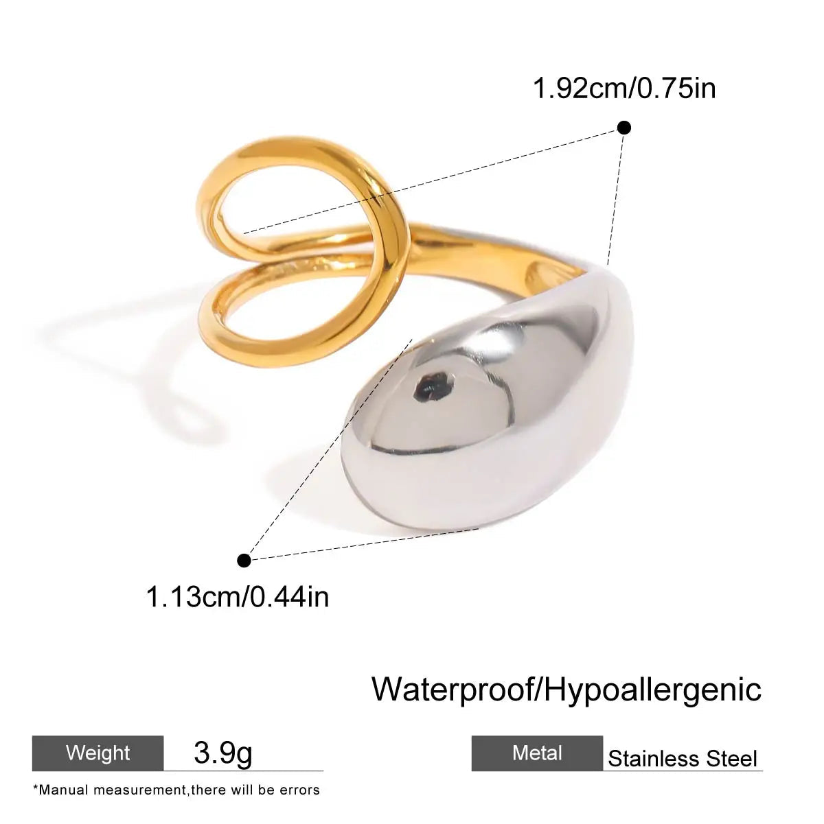 ステンレス304 低ニッケル 水に濡れても錆びにくい 18Kゴールドメッキ リング 【YJ02721】