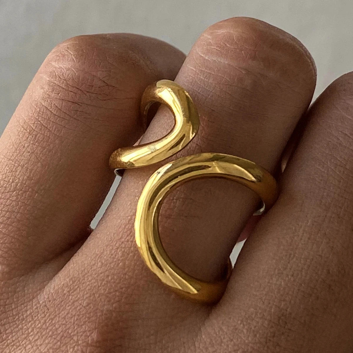 ステンレス304 低ニッケル 水に濡れても錆びにくい 18Kゴールドメッキ リング ウェーブ【YJ02791】