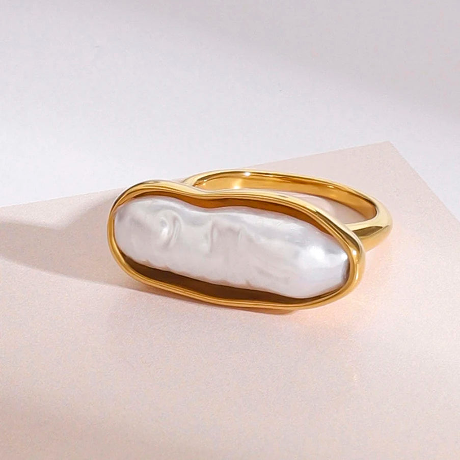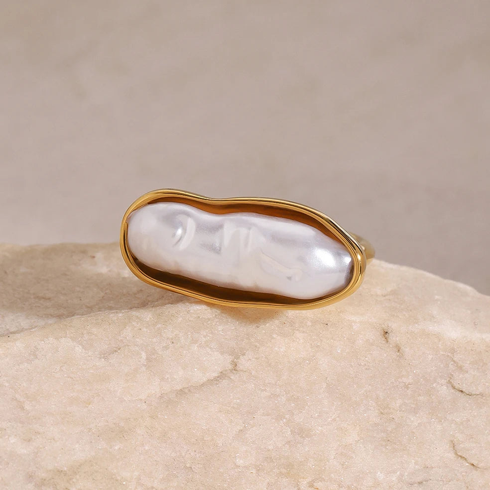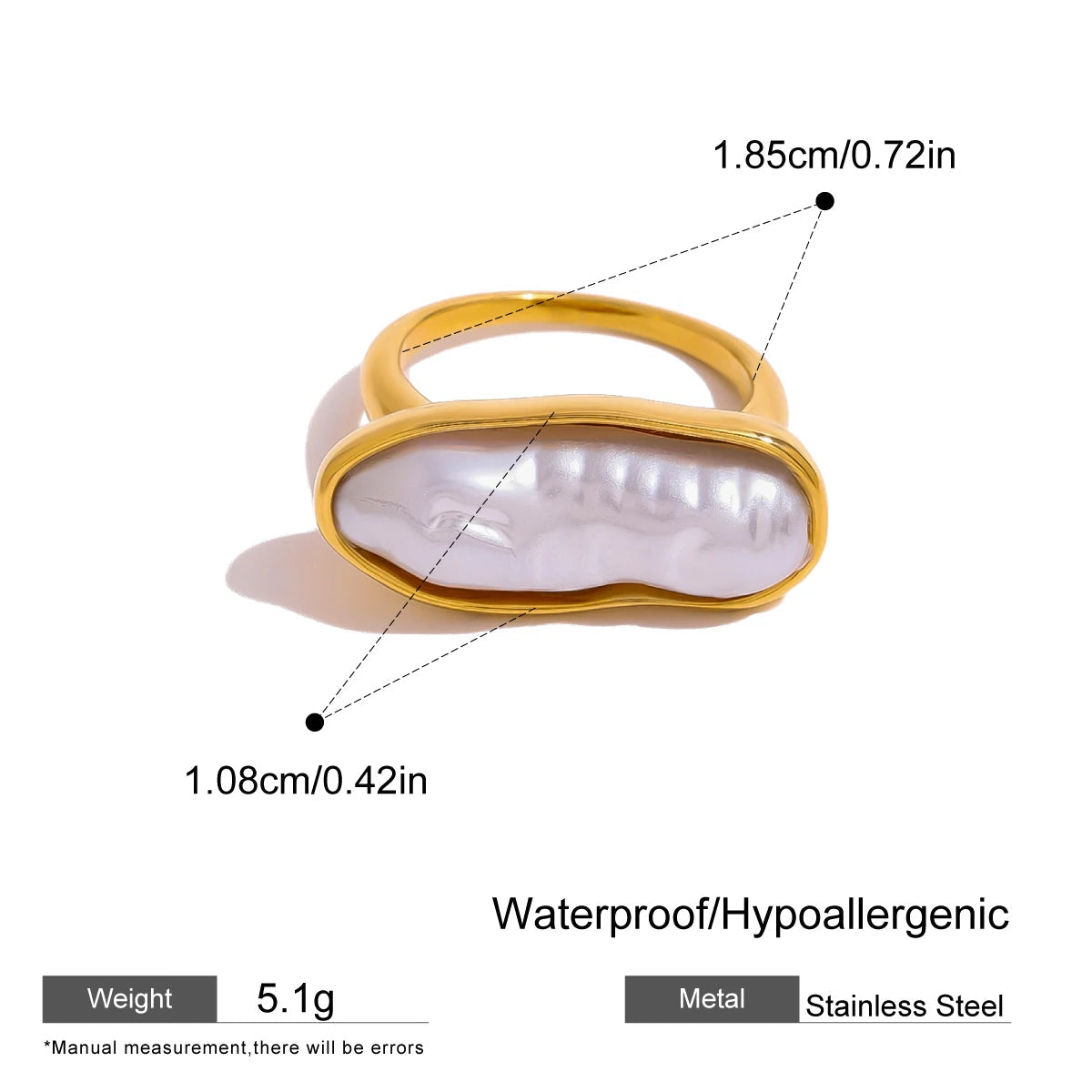ステンレス304 低ニッケル 水に濡れても錆びにくい 18Kゴールドメッキ リング パール 【YJ02891】