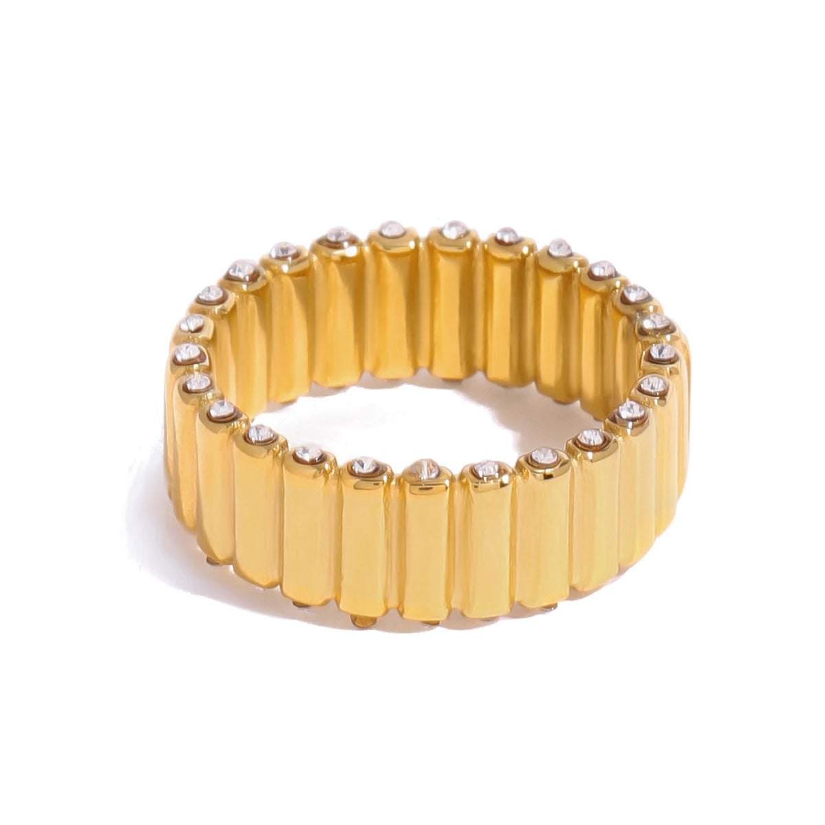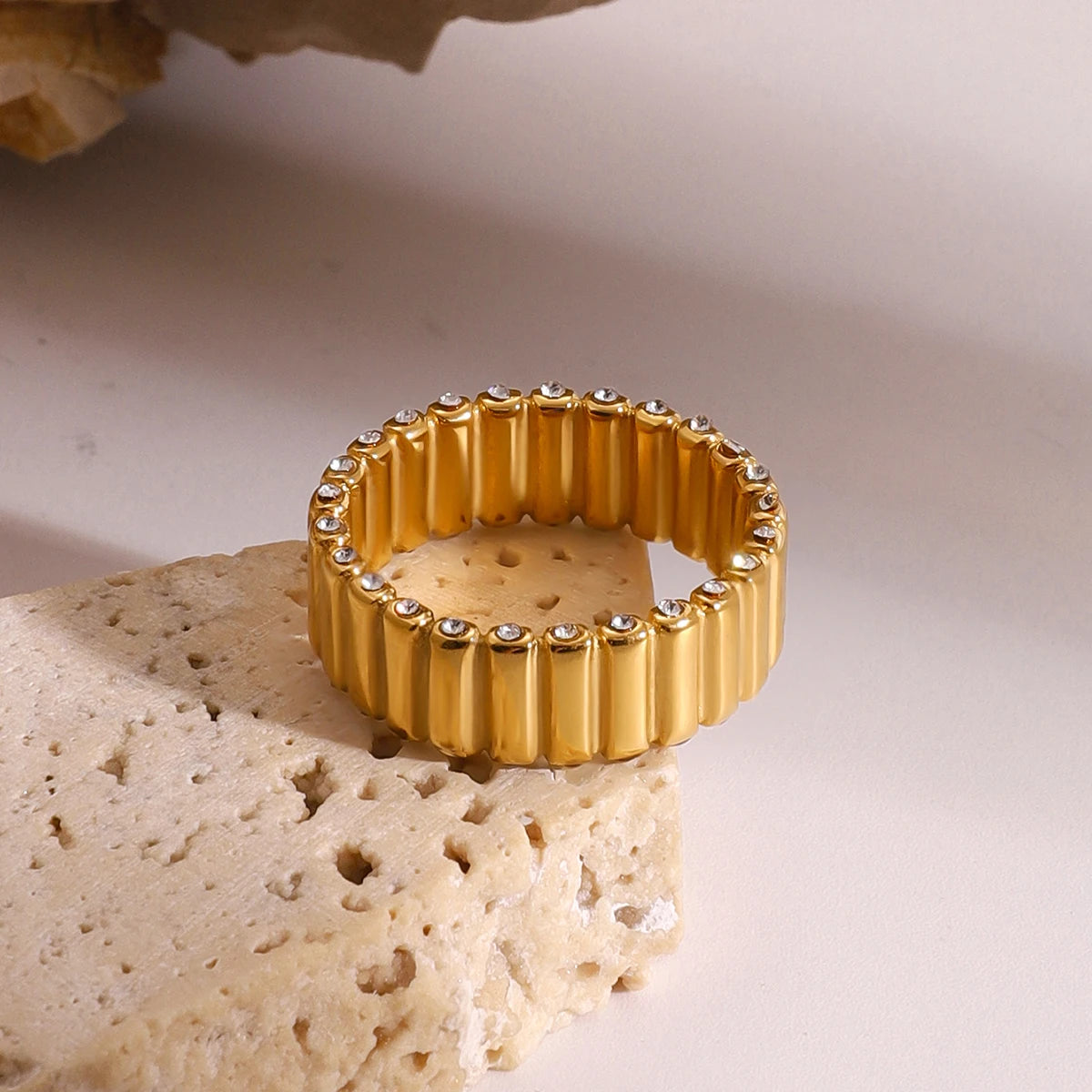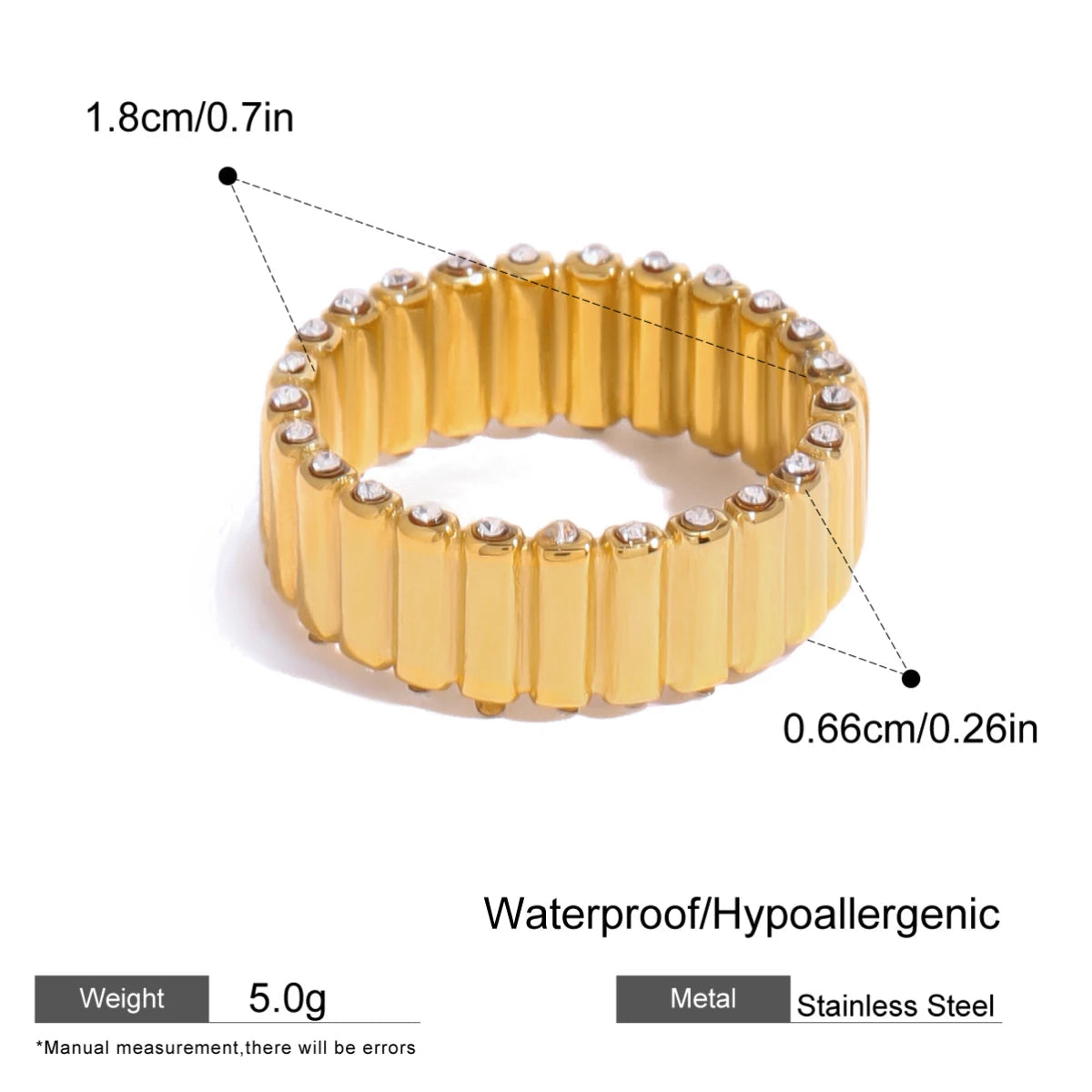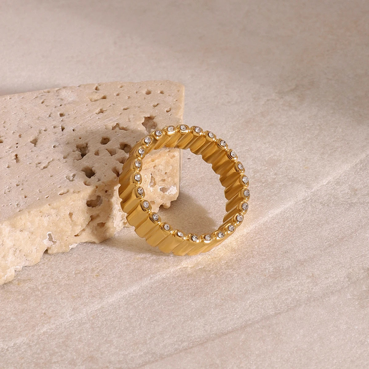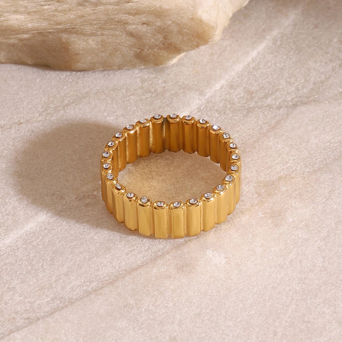 ステンレス304 低ニッケル 水に濡れても錆びにくい 18Kゴールドメッキ リング ジルコニア 【YJ03117】