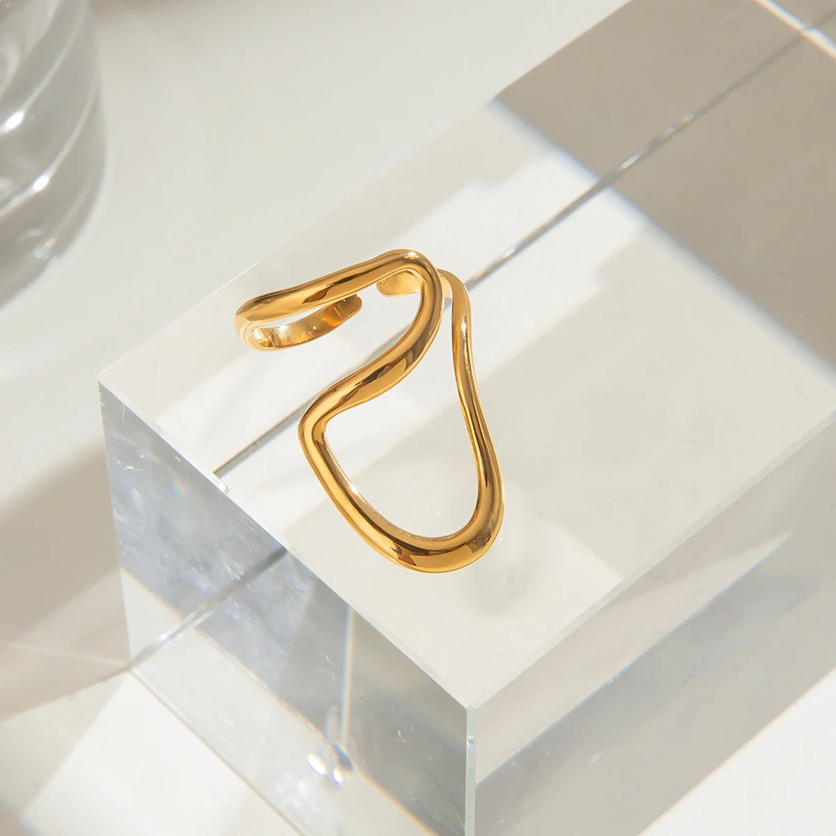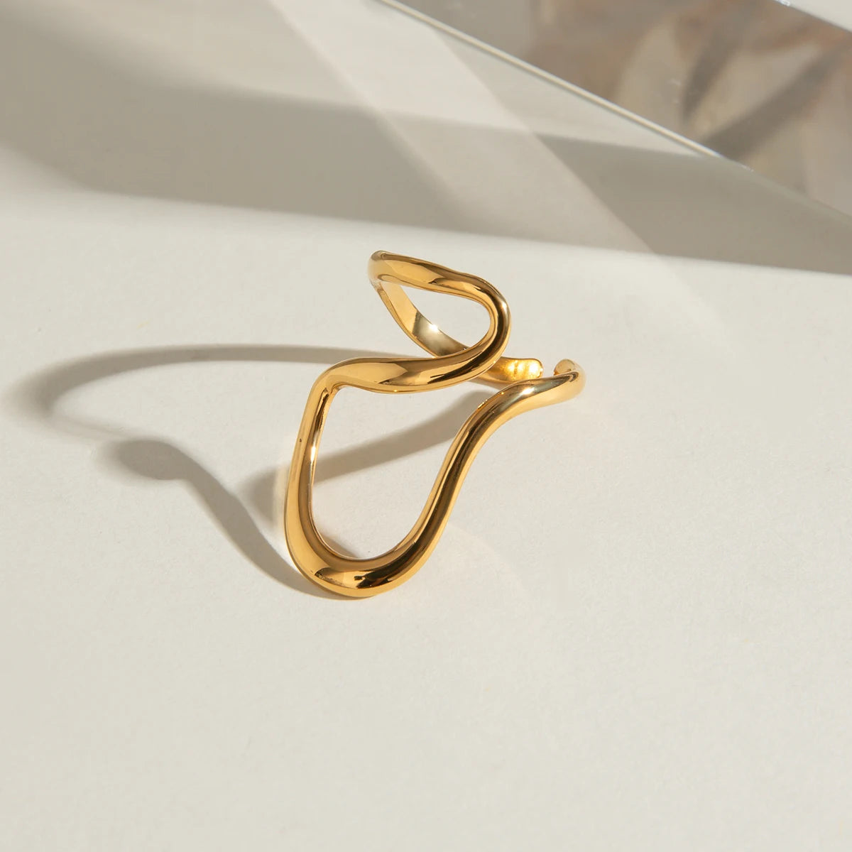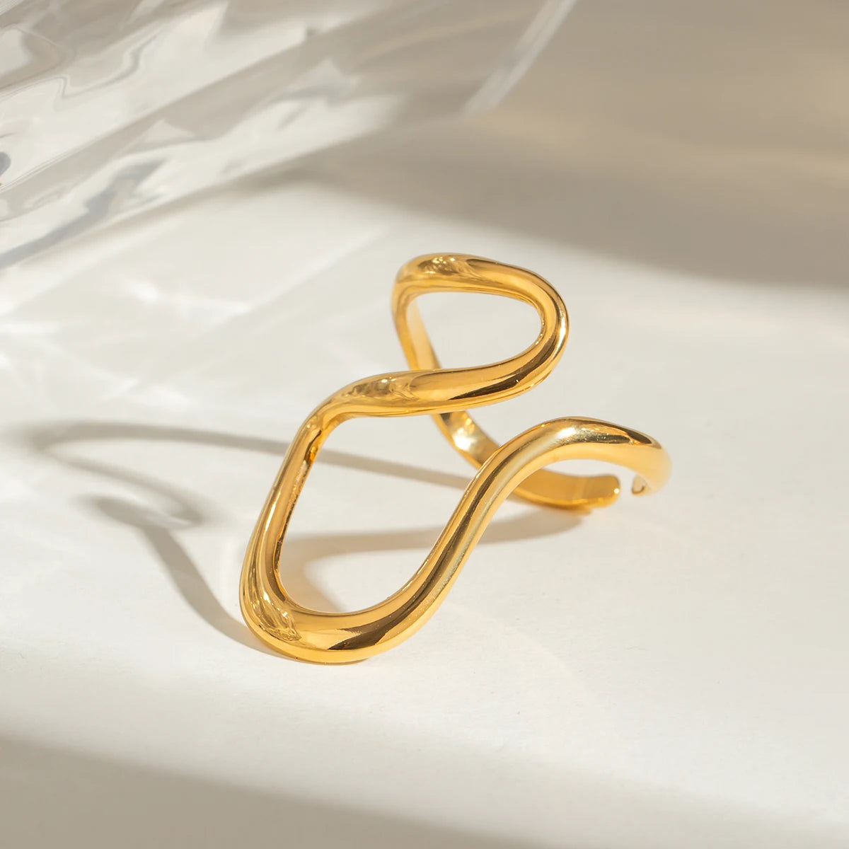 ステンレス304 低ニッケル 水に濡れても錆びにくい 18Kゴールドメッキ リング 【YJ03124】