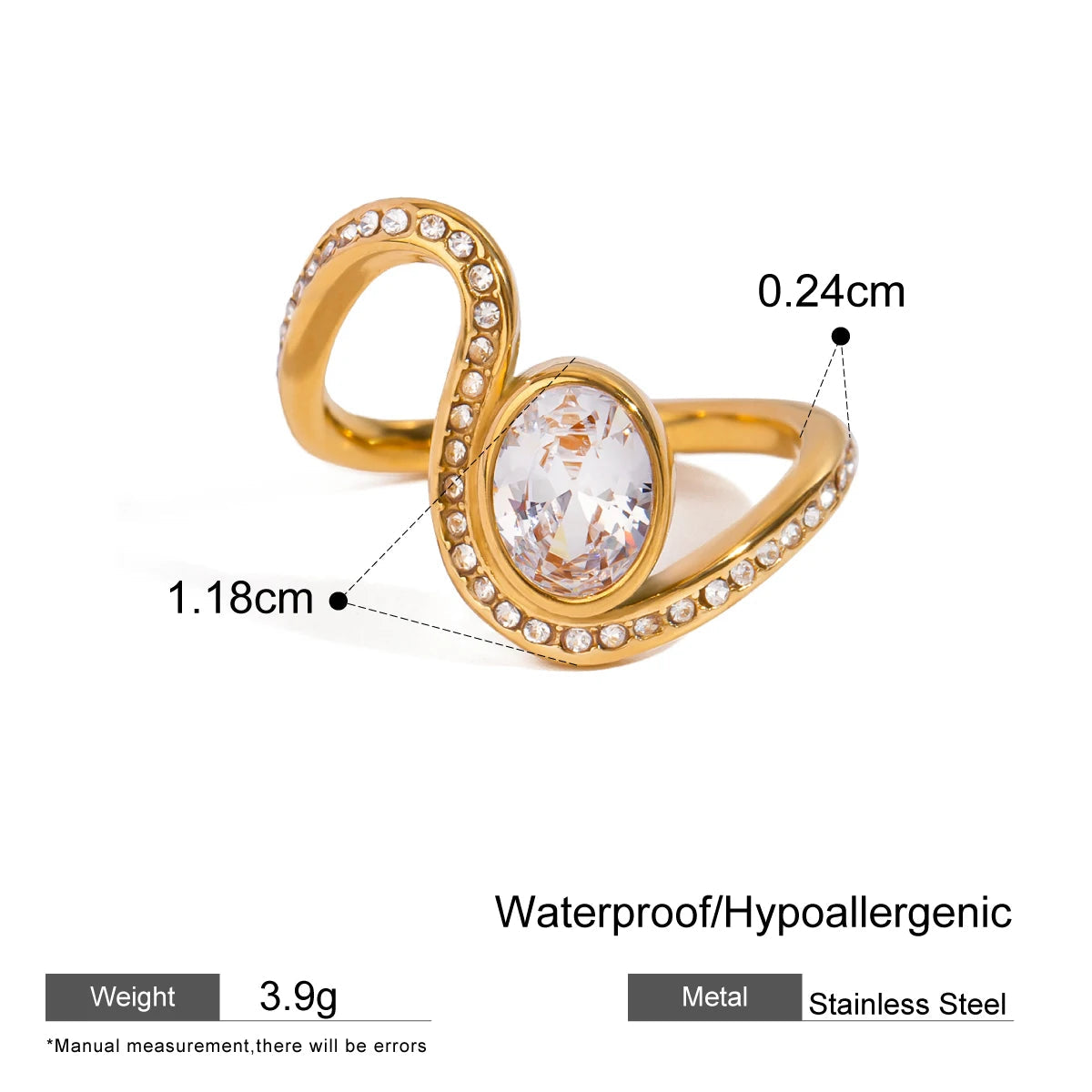 ステンレス304 低ニッケル 水に濡れても錆びにくい 18Kゴールドメッキ リング ジルコニア【YJ03199】