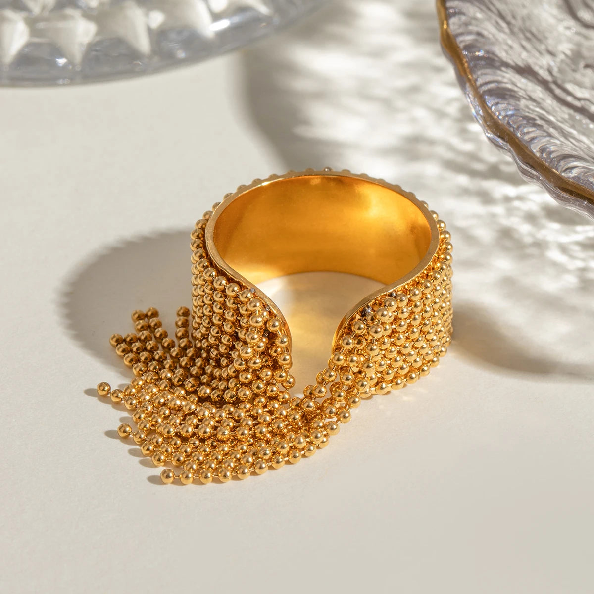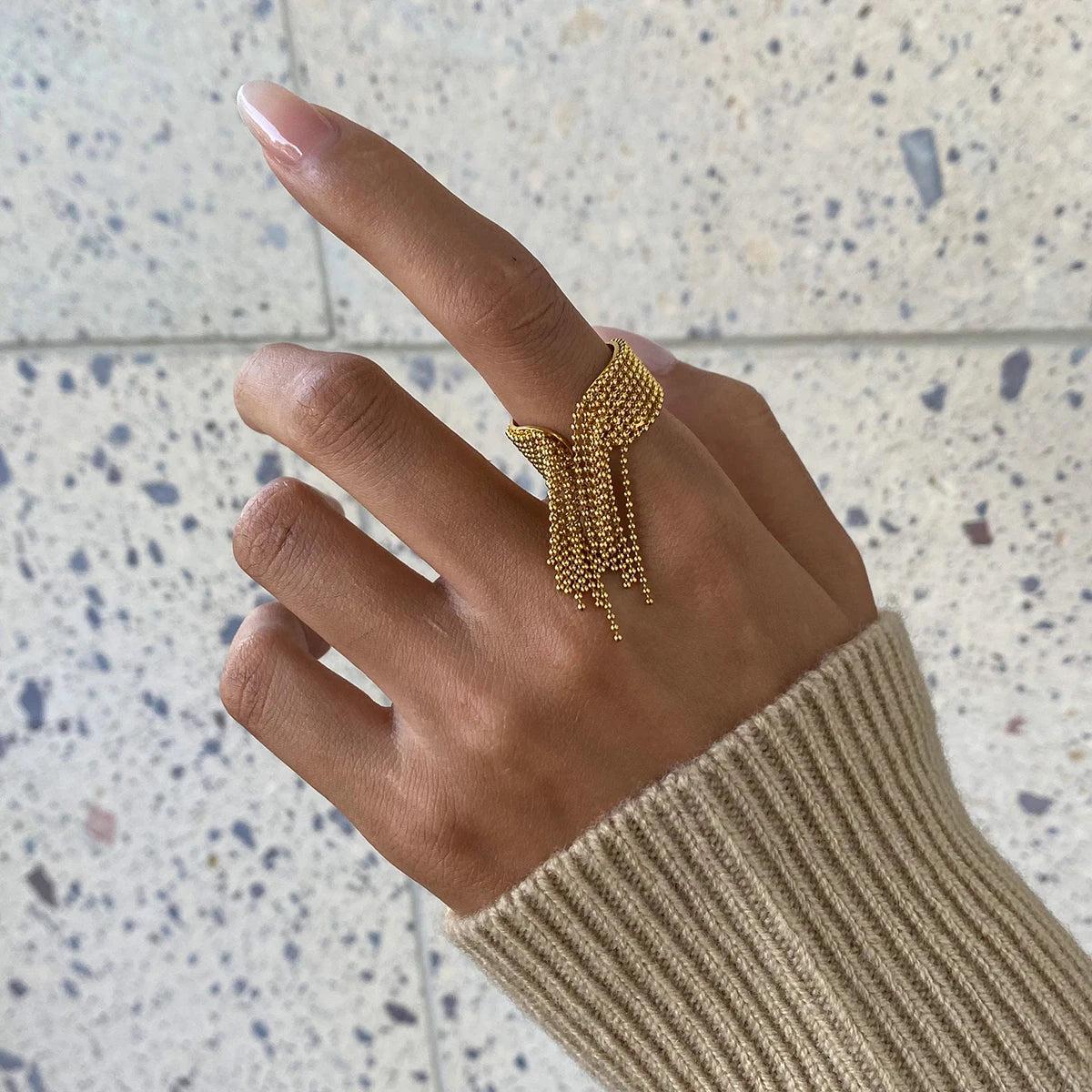 ステンレス304 低ニッケル 水に濡れても錆びにくい 18Kゴールドメッキ リング タッセル 【YJ03269】