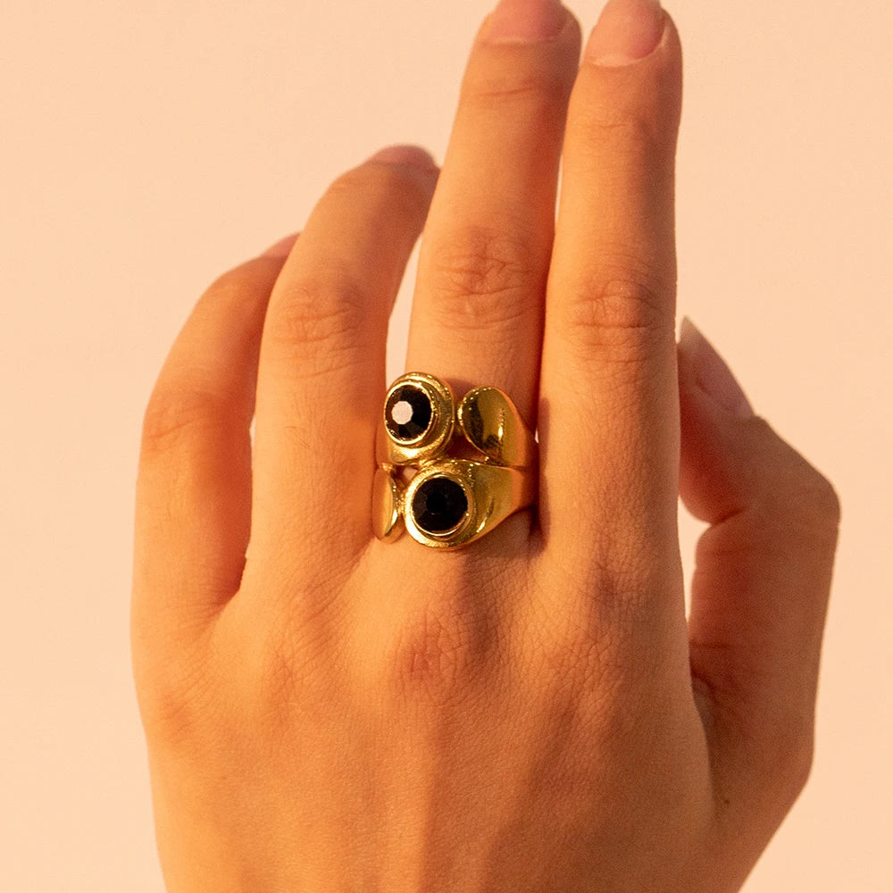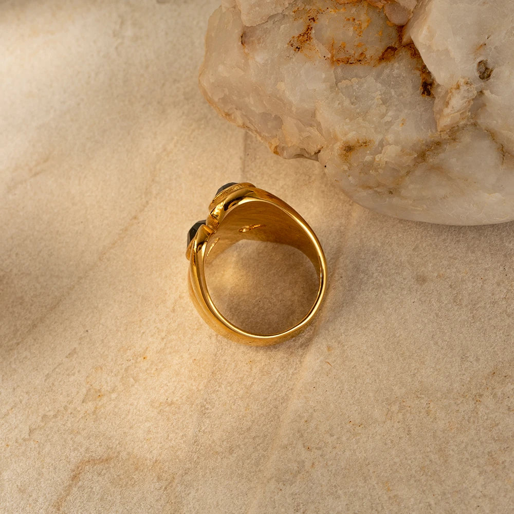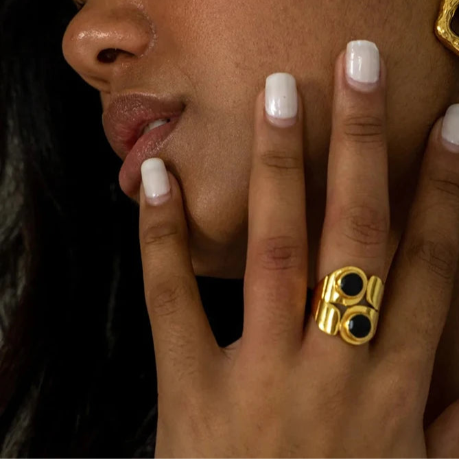 ステンレス304 低ニッケル 水に濡れても錆びにくい 18Kゴールドメッキ リング 2層 【YJ03271】