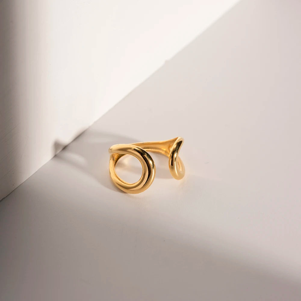 ステンレス304 低ニッケル 水に濡れても錆びにくい 18Kゴールドメッキ リング 【YJ03425】