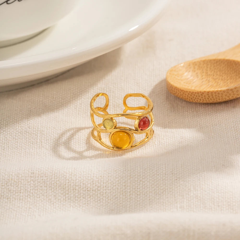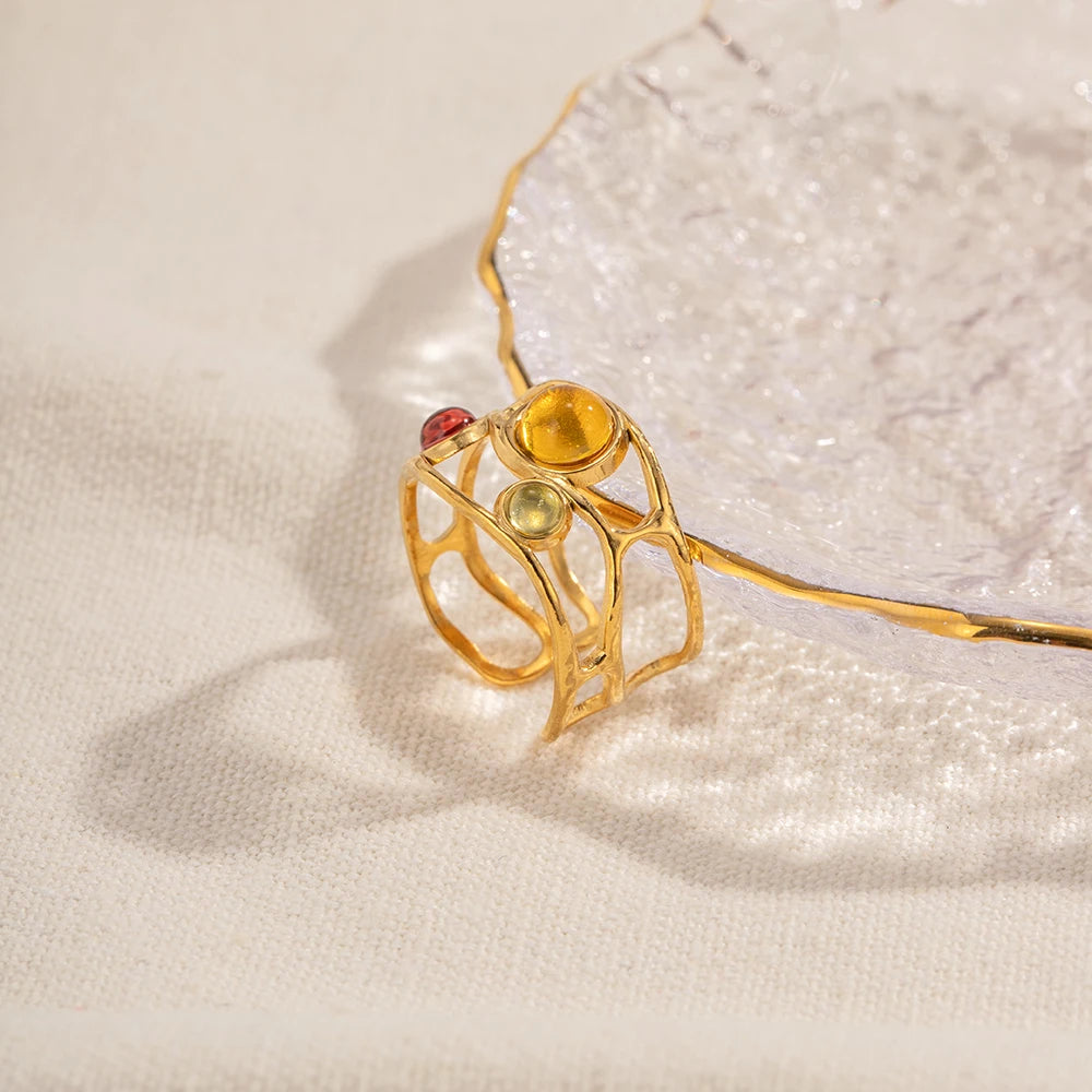 ステンレス304 低ニッケル 水に濡れても錆びにくい 18Kゴールドメッキ リング 【YJ03430】