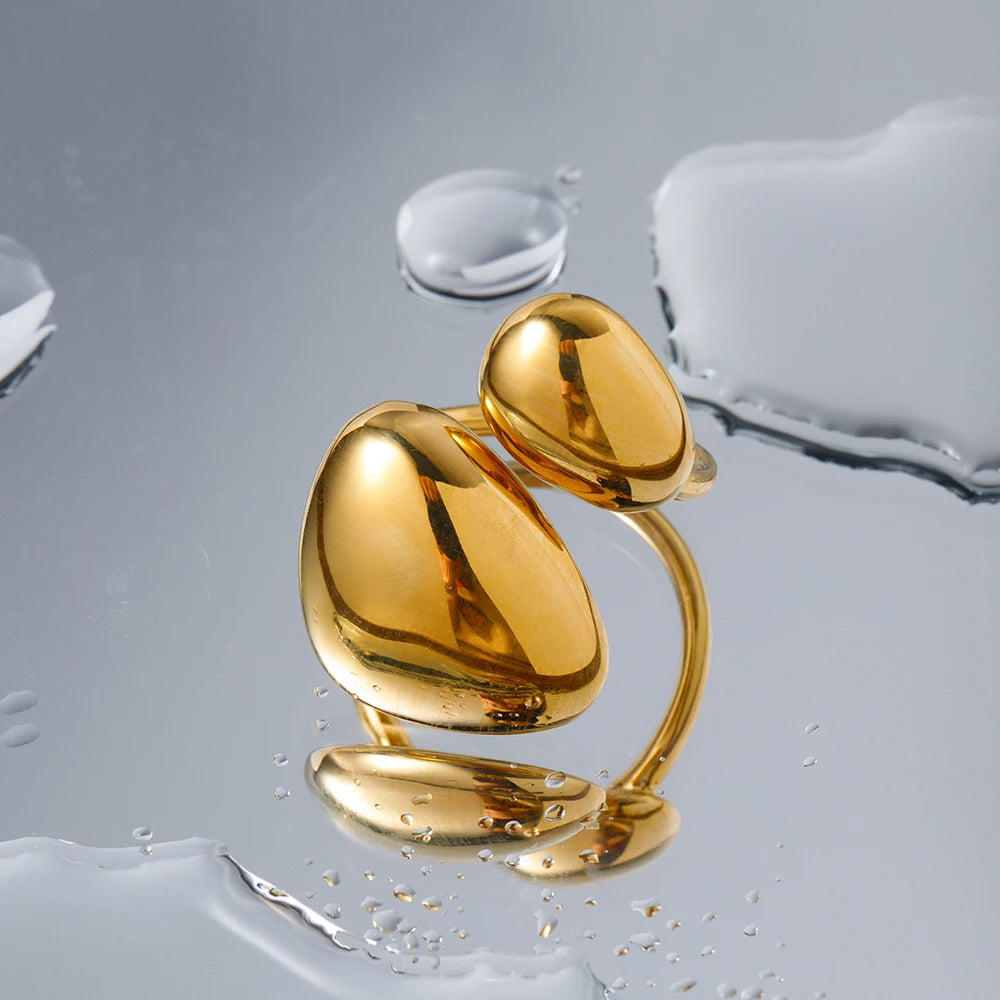ステンレス304 低ニッケル 水に濡れても錆びにくい 18Kゴールドメッキ リング 【YJ03498】