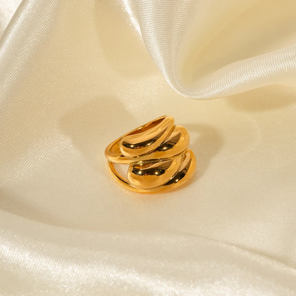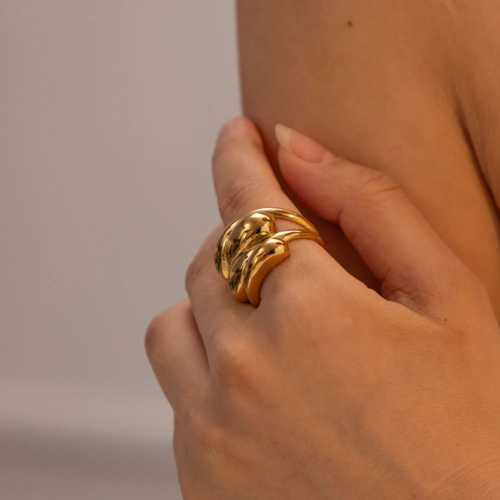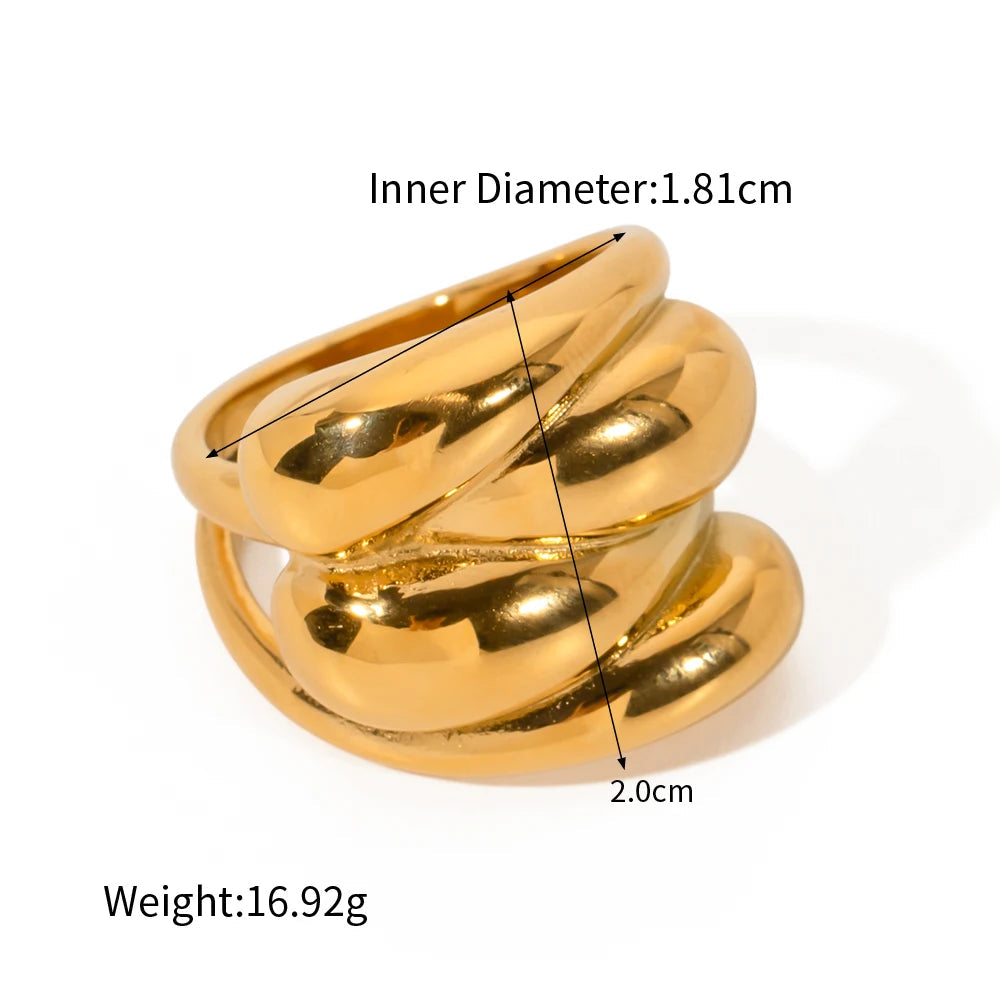 ステンレス304 低ニッケル 水に濡れても錆びにくい 18Kゴールドメッキ リング ツイスト 【YJ03508】