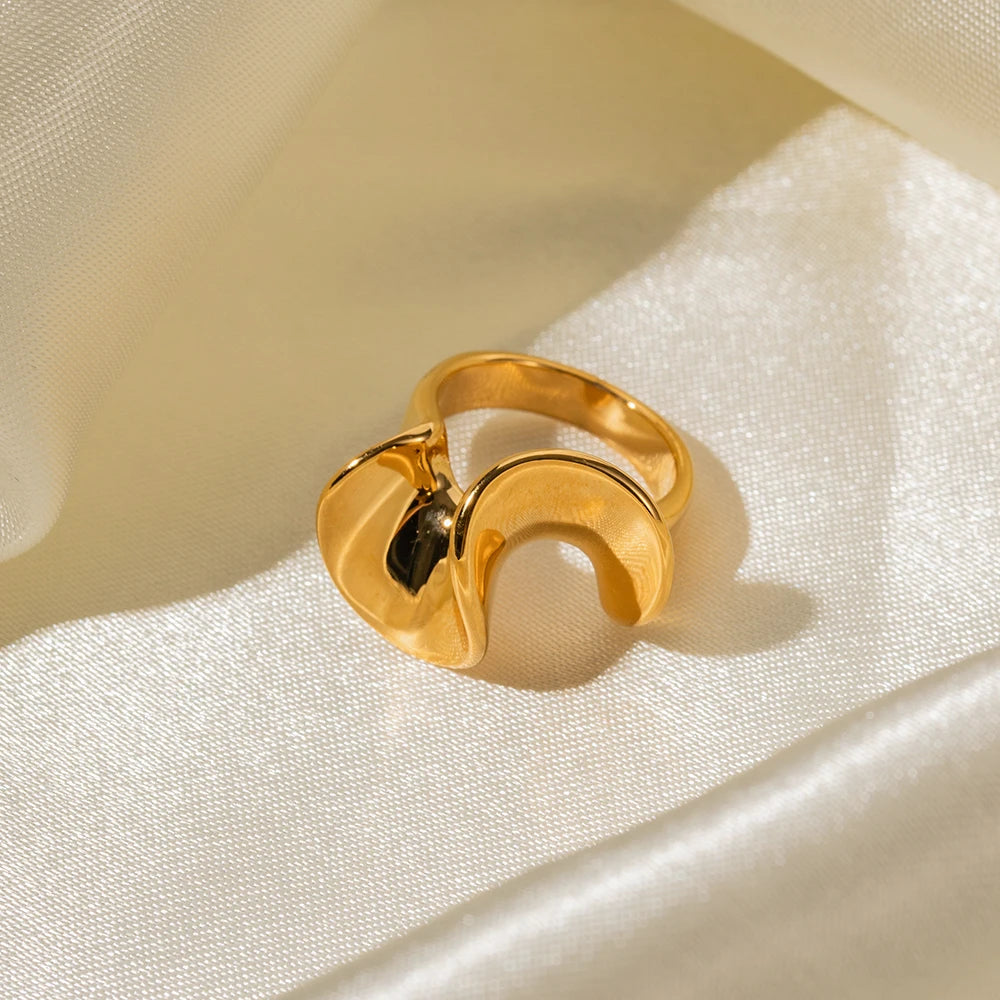 ステンレス304 低ニッケル 水に濡れても錆びにくい 18Kゴールドメッキ リング 【YJ03537】