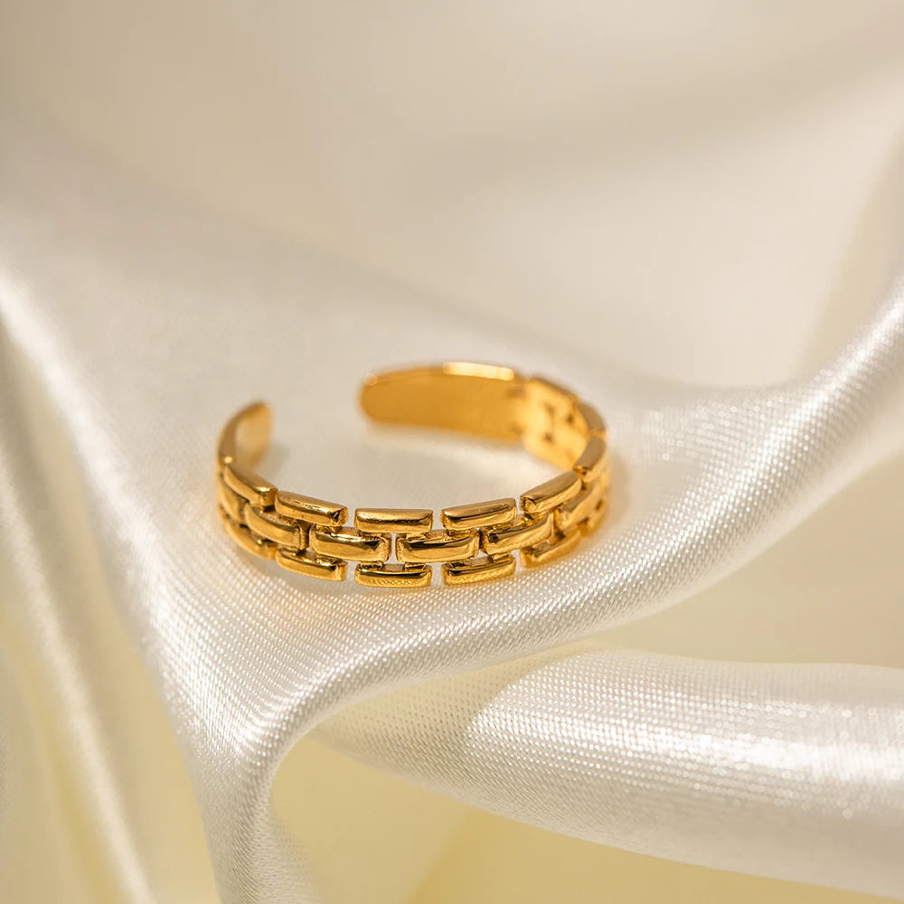 ステンレス304 低ニッケル 水に濡れても錆びにくい 18Kゴールドメッキ リング 【YJ03555】