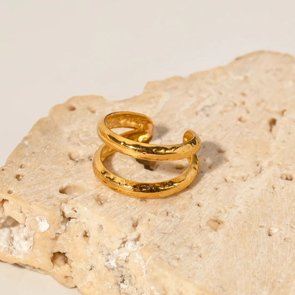 ステンレス304 低ニッケル 水に濡れても錆びにくい 18Kゴールドメッキ リング 【YJ03606】