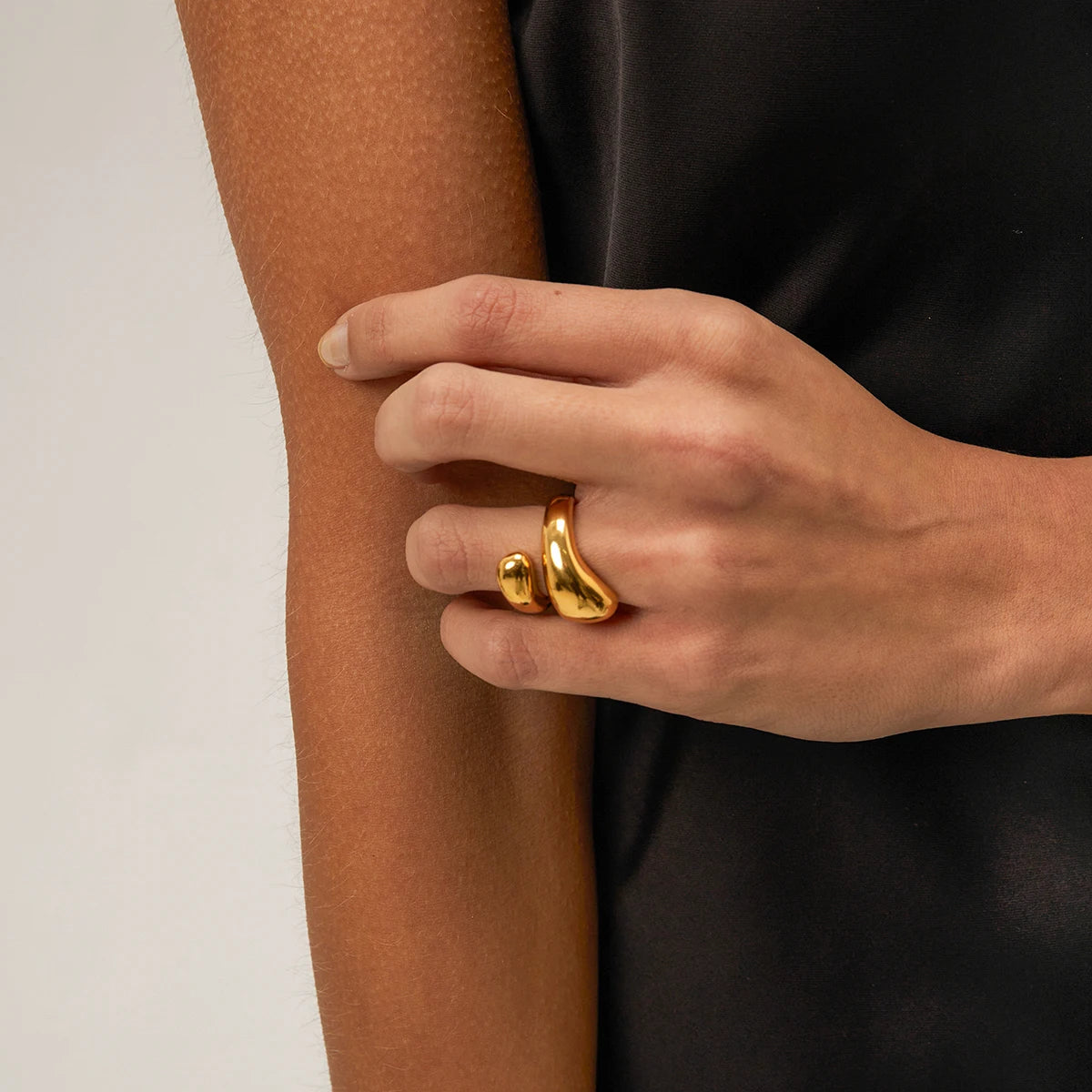 ステンレス304 低ニッケル 水に濡れても錆びにくい 18Kゴールドメッキ リング 【YJ03615】