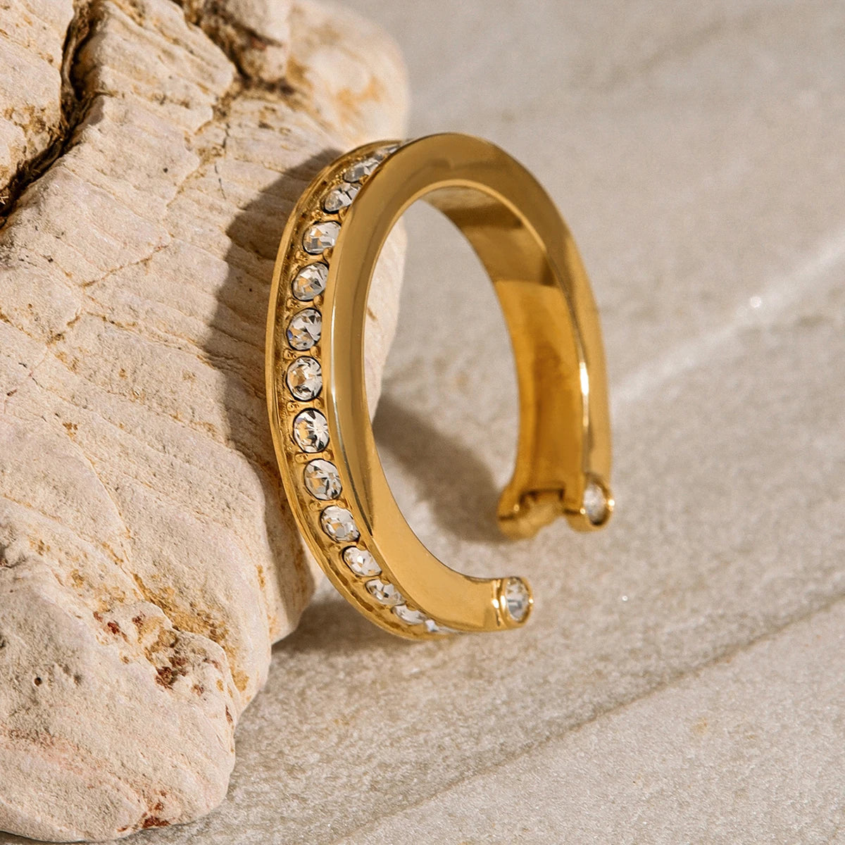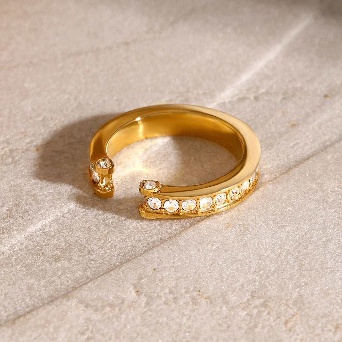 ステンレス304 低ニッケル 水に濡れても錆びにくい 18Kゴールドメッキ リング ジルコニア 【YJ03698】
