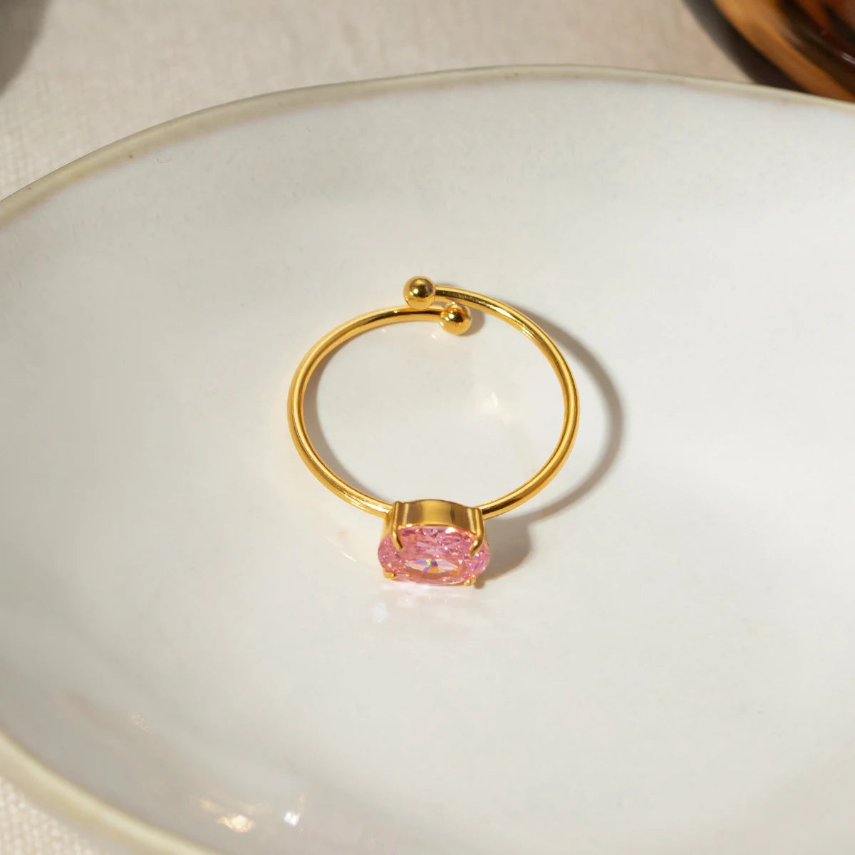 ステンレス304 低ニッケル 水に濡れても錆びにくい 18Kゴールドメッキ リング ジルコニア 【YJ03744】