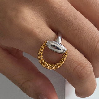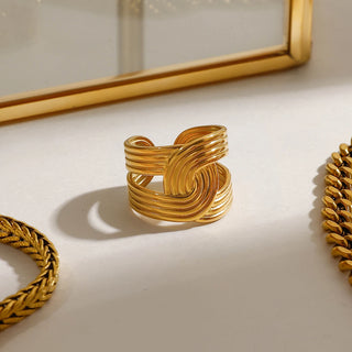 ステンレス304 低ニッケル 水に濡れても錆びにくい 18Kゴールドメッキ リング ツイスト【YJ02636】