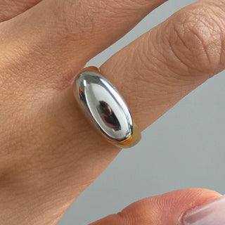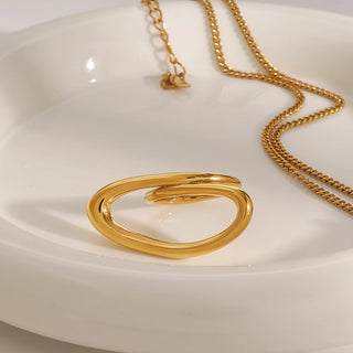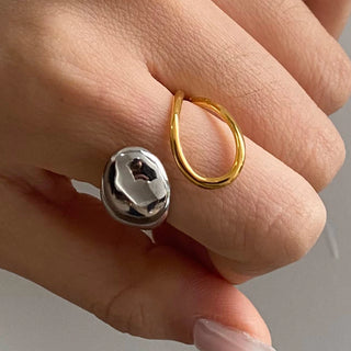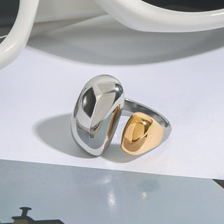 ステンレス304 低ニッケル 水に濡れても錆びにくい 18Kゴールドメッキ リング シェル オーバル 【YJ02848】