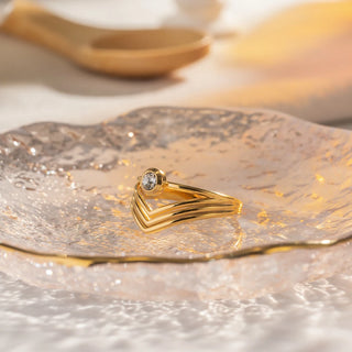 ステンレス304 低ニッケル 水に濡れても錆びにくい 18Kゴールドメッキ リング 3層 ハート ジルコニア 【YJ02827】