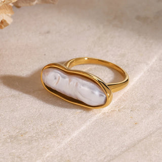 ステンレス304 低ニッケル 水に濡れても錆びにくい 18Kゴールドメッキ リング パール 【YJ02929】