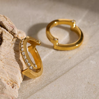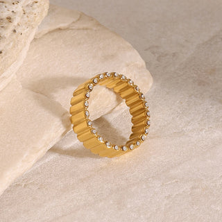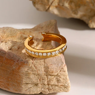ステンレス304 低ニッケル 水に濡れても錆びにくい 18Kゴールドメッキ リング チャンキー ジルコニア 【YJ03717】