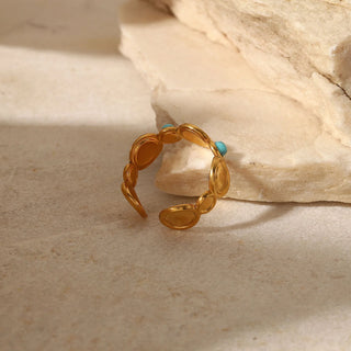 ステンレス304 低ニッケル 水に濡れても錆びにくい 18Kゴールドメッキ リング ターコイズ 【YJ03653】