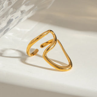 ステンレス304 低ニッケル 水に濡れても錆びにくい 18Kゴールドメッキ リング ハートビート【YJ03621】