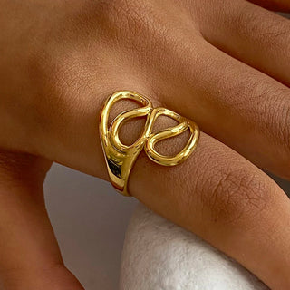 ステンレス304 低ニッケル 水に濡れても錆びにくい 18Kゴールドメッキ リング チャンキー 【YJ03721】