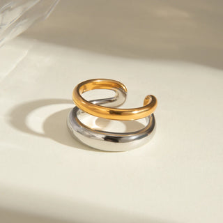 ステンレス304 低ニッケル 水に濡れても錆びにくい 18Kゴールドメッキ リング 2層 【YJ03271】