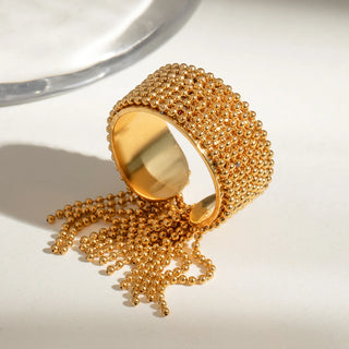 ステンレス304 低ニッケル 水に濡れても錆びにくい 18Kゴールドメッキ リング タッセル 【YJ03269】