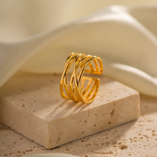 ステンレス304 低ニッケル 水に濡れても錆びにくい 18Kゴールドメッキ リング チャンキー 【YJ01818】