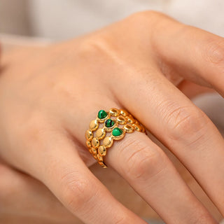 ステンレス304 低ニッケル 水に濡れても錆びにくい 18Kゴールドメッキ リング 2層 天然石風ストーン 【YJ01690】