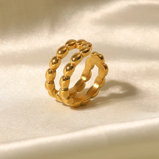 ステンレス304 低ニッケル 水に濡れても錆びにくい 18Kゴールドメッキ リング チャンキー ティアドロップ 【YJ01780】