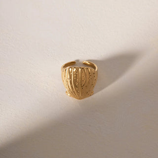 ステンレス304 低ニッケル 水に濡れても錆びにくい 18Kゴールドメッキ リング シェル 貝殻 【YJ01647】