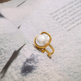 ステンレス304 低ニッケル 水に濡れても錆びにくい 18Kゴールドメッキ リング パール 【YJ01790】