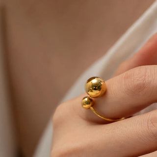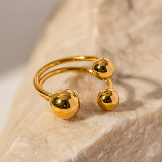 ステンレス304 低ニッケル 水に濡れても錆びにくい 18Kゴールドメッキ リング 2層 ボール【YJ01625】