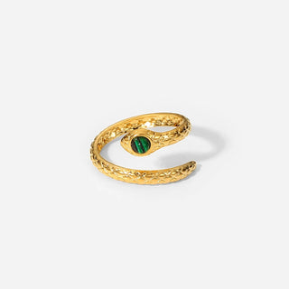 ステンレス304 低ニッケル 水に濡れても錆びにくい 18Kゴールドメッキ リング 蛇 ヘビ スネーク ジルコニア 【YJ01781】