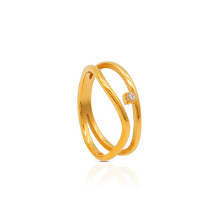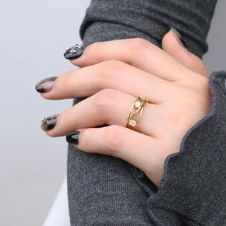 316Lサージカルステンレス リング 2層 ウェーブ ジルコニア【NY01550】