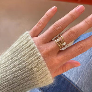 316Lサージカルステンレス リング ウェーブ ジルコニア 4層【NY01610】