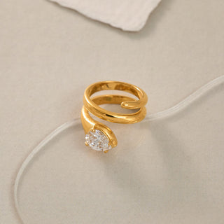 316Lサージカルステンレス リング ウェーブ ジルコニア ティアドロップ【NY01611】