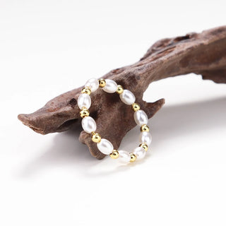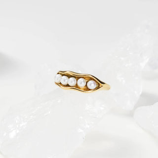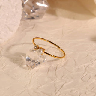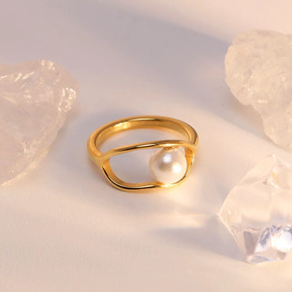 316Lサージカルステンレス 18Kゴールドメッキ リング パール【NY01659】