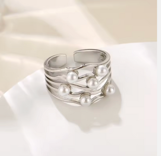 316Lサージカルステンレス リング ウェーブ パール【NY01684】