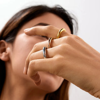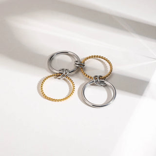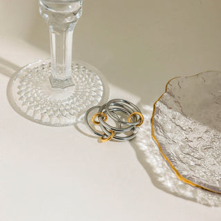 ステンレス304 低ニッケル 水に濡れても錆びにくい 18Kゴールドメッキ リング 2層 チャンキー 【YJ01184】