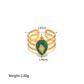 ステンレス304 ニッケルフリー 水に濡れても錆びにくい 18Kゴールドメッキ チャンキー リング 天然石風ストーン 【YJ00975】