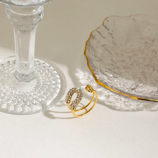 ステンレス304 低ニッケル 水に濡れても錆びにくい 18Kゴールドメッキ リング クリスタル 【YJ01101】