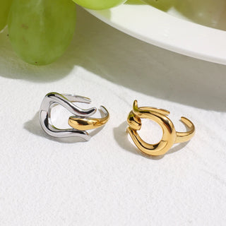 ステンレス304 ニッケルフリー 水に濡れても錆びにくい 18Kゴールドメッキ チャンキー リング 月 【YJ00942】